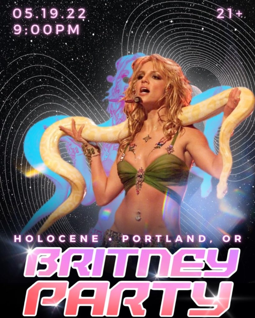PLEASE NOTE: For the safety of our customers, we will be requiring proof of full COVID vaccination to enter the venue (or negative rapid COVID test) until further notice. More details at holocene.org/vaccine BRITNEY PARTY • ❤️🔥 SAVE THE DATE / GRAB TIX Dance all night to music from the likes of Britney Spears! Follow us on Instagram! www.instagram.com/britneyparty 9:00PM-1:00AM | 21+$15 Advance $20 @ Doors